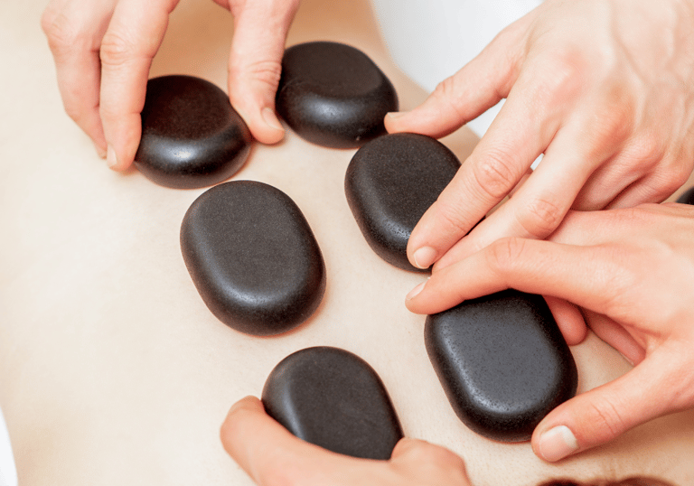 Heated stones melt away stiffness and provide deep muscle comfort.